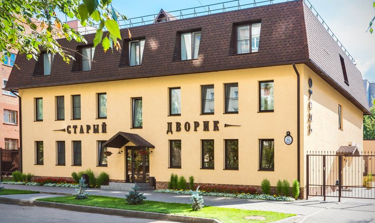 Каждый номер отеля "Старый дворик" обставлен в привлекательных пастельных тонах и оснащён рабочим столом. Во всех ванных комнатах гостей ждут уютные тапочки.